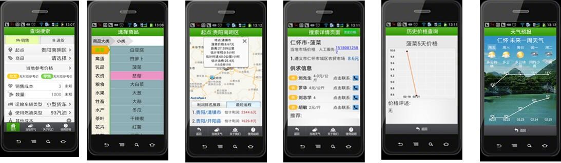 3.2013年曾楨團(tuán)隊(duì)設(shè)計(jì)開發(fā)貴州省農(nóng)貿(mào)通農(nóng)產(chǎn)品智能手機(jī)系統(tǒng),在國內(nèi)首先實(shí)現(xiàn)手機(jī)端農(nóng)產(chǎn)品交易路線規(guī)劃,交易搭配,氣象預(yù)警等功能,改產(chǎn)品獲得氣象局發(fā)明獎(jiǎng)項(xiàng)。