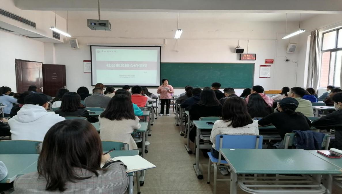 課上,余老師從三個(gè)層面的核心價(jià)值觀展開。國家層面,帶領(lǐng)同學(xué)們回顧了中國共產(chǎn)黨史,以及面對(duì)當(dāng)下疫情,中國集中力量辦大事,彰顯制度優(yōu)勢(shì)。社會(huì)層面,中國共產(chǎn)黨把人民放在至高位置,體現(xiàn)了人民當(dāng)家作主的制度體系,在疫情防控期間各地政府從根本上維護(hù)社會(huì)穩(wěn)定。個(gè)人層面,以疫情防控為例,疫情期間涌現(xiàn)出許多可歌可泣的英雄人物,極大凸顯出社會(huì)主義核心價(jià)值觀。