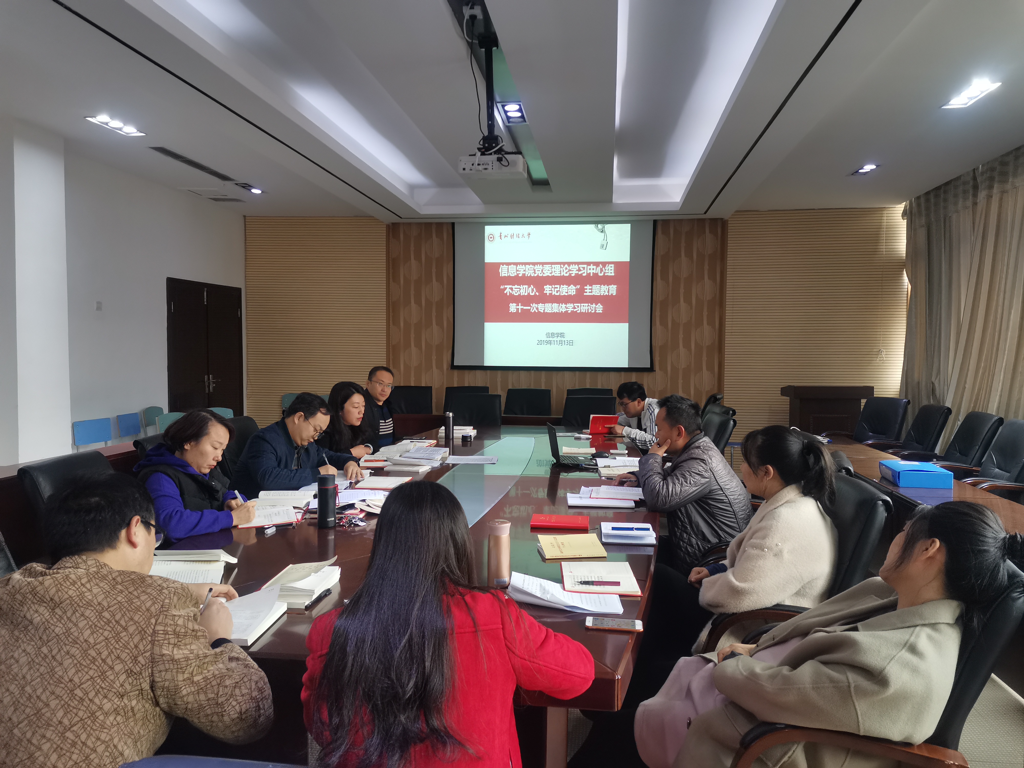信息學(xué)院黨委理論學(xué)習(xí)中心組于11月14日早上在志學(xué)樓427會(huì)議室召開(kāi)“不忘初心、牢記使命”主題教育第十二次專(zhuān)題集體學(xué)習(xí)研討會(huì),學(xué)院領(lǐng)導(dǎo)、各系(科室)負(fù)責(zé)人、黨支部書(shū)記參會(huì),卿春主持會(huì)議。