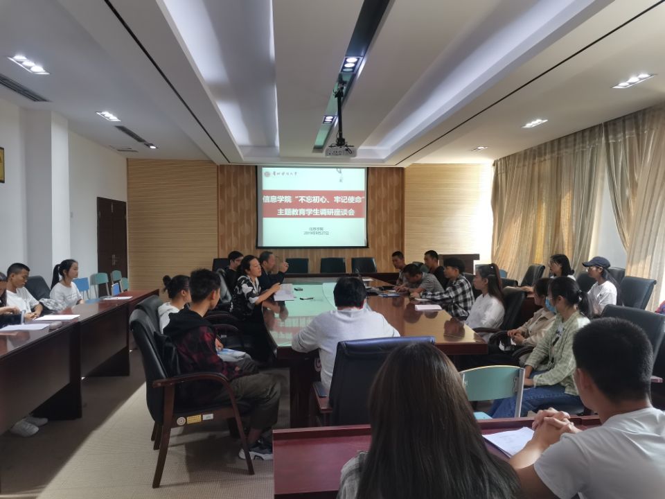 9月27日,信息學(xué)院在志學(xué)樓427會(huì)議室召開了“不忘初心、牢記使命”主題教育學(xué)生調(diào)研座談會(huì),學(xué)院黨委書記卿春、副書記何瑞、副院長陳琴及各科室負(fù)責(zé)人、學(xué)生代表50余人參會(huì)。