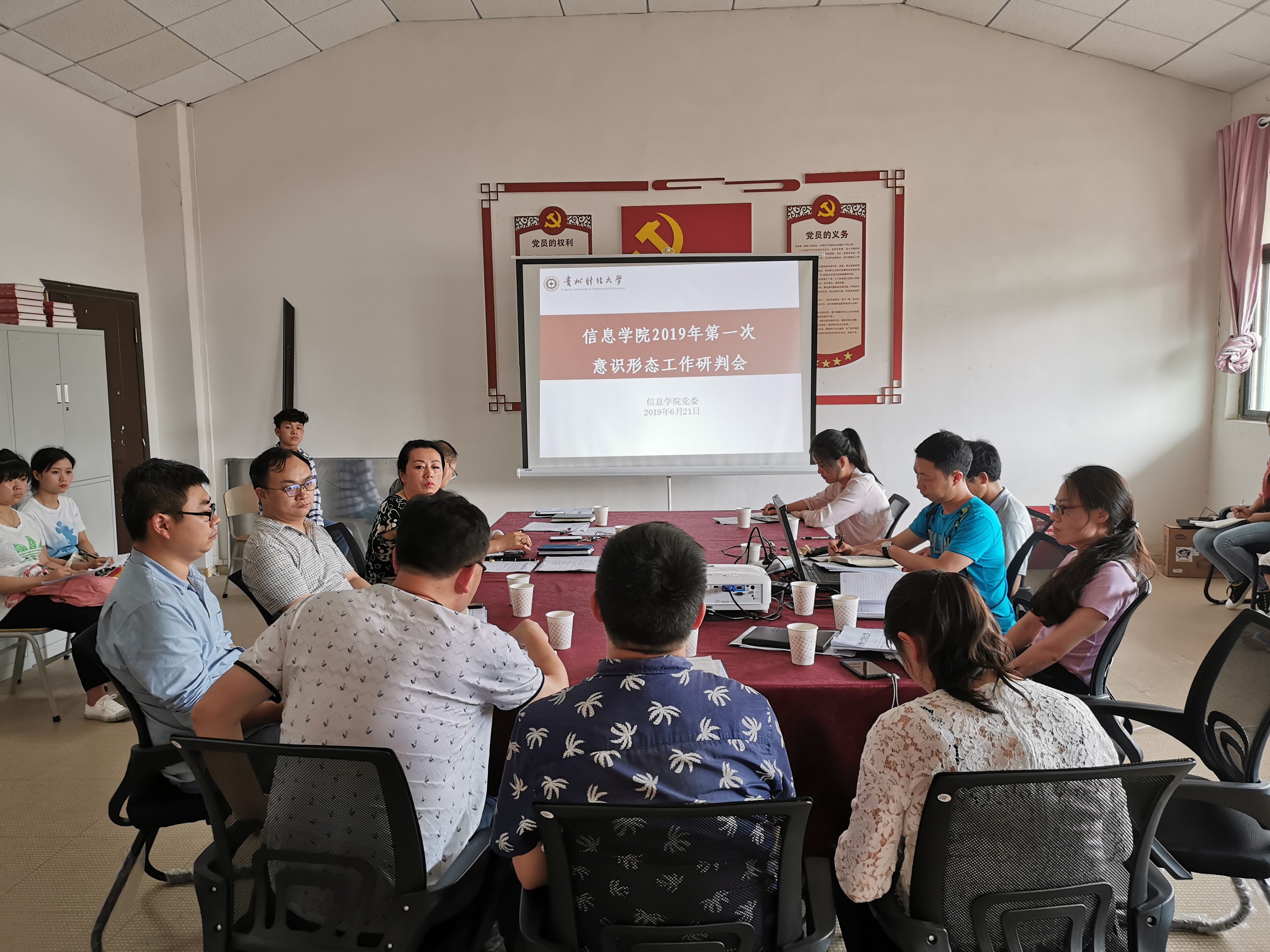 本網(wǎng)訊:(趙里紅 圖文報道)6月21日下午,信息學(xué)院在志學(xué)樓505黨員活動室召開了2019年第一次意識形態(tài)工作研判會,學(xué)院黨委書記卿春、院長鄧明森、副書記何瑞、副院長郭長睿及學(xué)院各系、各科室負(fù)責(zé)人、黨支部書記、學(xué)生代表參會,何瑞主持會議。