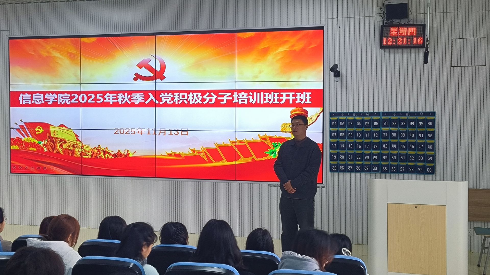 本網(wǎng)訊:(張教杰 圖文報道)新征程的號角已經(jīng)吹響,青春向黨的步伐鏗鏘有力!11月13日中午,信息學(xué)院入黨積極分子培訓(xùn)班在進學(xué)樓102開班,院黨委書記詹偉出席開班典禮,并為參訓(xùn)學(xué)員講授了首堂培訓(xùn)課。
