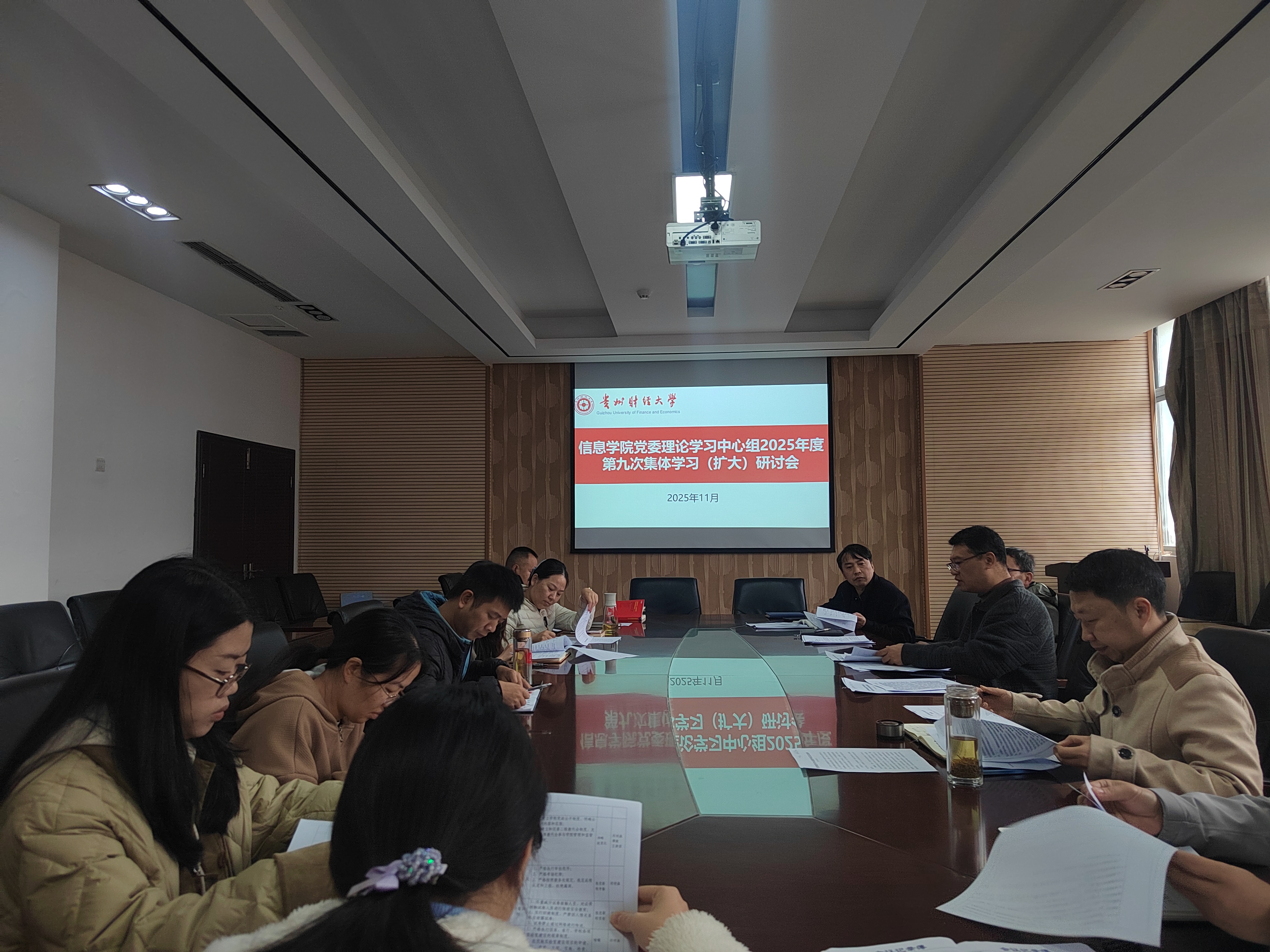 本網(wǎng)訊:(劉小浪 圖文報道)10月13日上午,信息學院黨委理論學習中心組舉行2025年度第九次集體學習(擴大)研討會在志學樓427會議室召開,專題學習黨的二十屆四中全會精神。副院長崔鵬,各黨支部書記、各系部(科室)負責人列席會議。院黨委書記詹偉主持會議并講話。