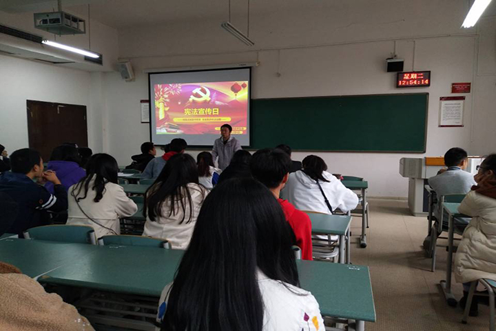 12月4日,為了增強廣大師生的憲法意識,深入學習貫徹中共十八屆四中全會提出的堅持依法治國,堅持依憲治國的精神,參與到十二屆全國人大常務會第十一次會議通過的設立“國家憲法日”之中去,信息學院在志學樓414舉辦憲法宣傳日主題活動,學院團委書記王游濱,100余名學生代表參加了此次活動。