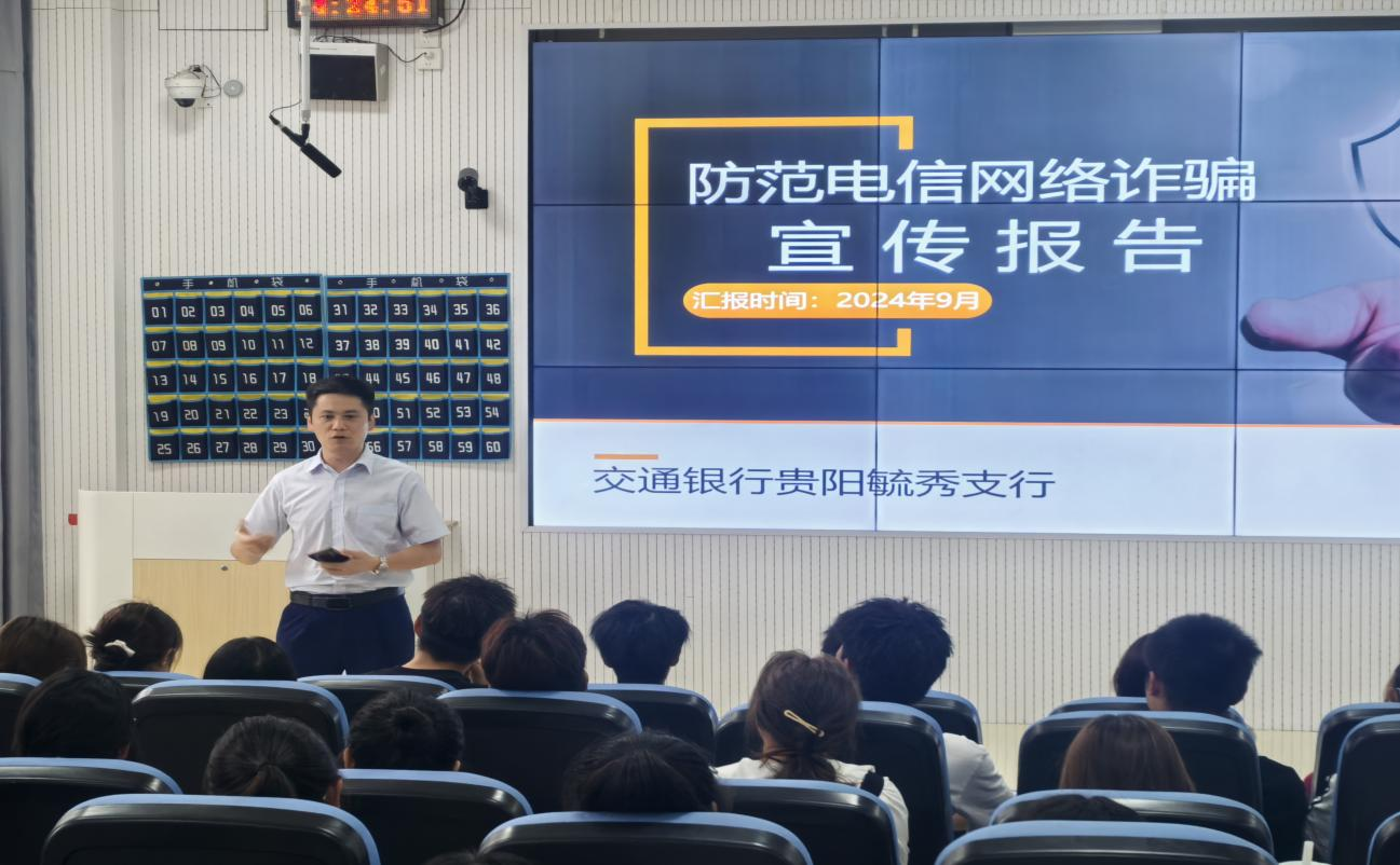 本網(wǎng)訊:(秦敏 圖文報(bào)道)為進(jìn)一步提升大學(xué)生防范電信網(wǎng)絡(luò)詐騙的自我保護(hù)能力,2024年9月18日下午,信息學(xué)院邀請(qǐng)2008級(jí)信息管理與信息系統(tǒng)專業(yè)校友、交通銀行貴陽(yáng)毓秀支行行長(zhǎng)彭健開(kāi)展專題宣講,活動(dòng)在進(jìn)學(xué)樓103舉行,2024級(jí)新生120人參加了此次宣講活動(dòng)。此次專題宣講旨在通過(guò)對(duì)電信網(wǎng)絡(luò)詐騙典型案例和新型詐騙手段深入分析,提高學(xué)生識(shí)別和防范電信詐騙的能力,保障學(xué)生個(gè)人財(cái)產(chǎn)安全,構(gòu)建和諧平安校園。