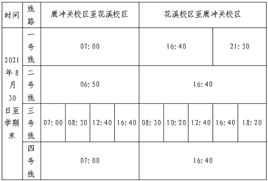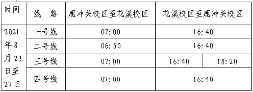 一、交通車運(yùn)行日期:2021年8月23日至學(xué)期末。